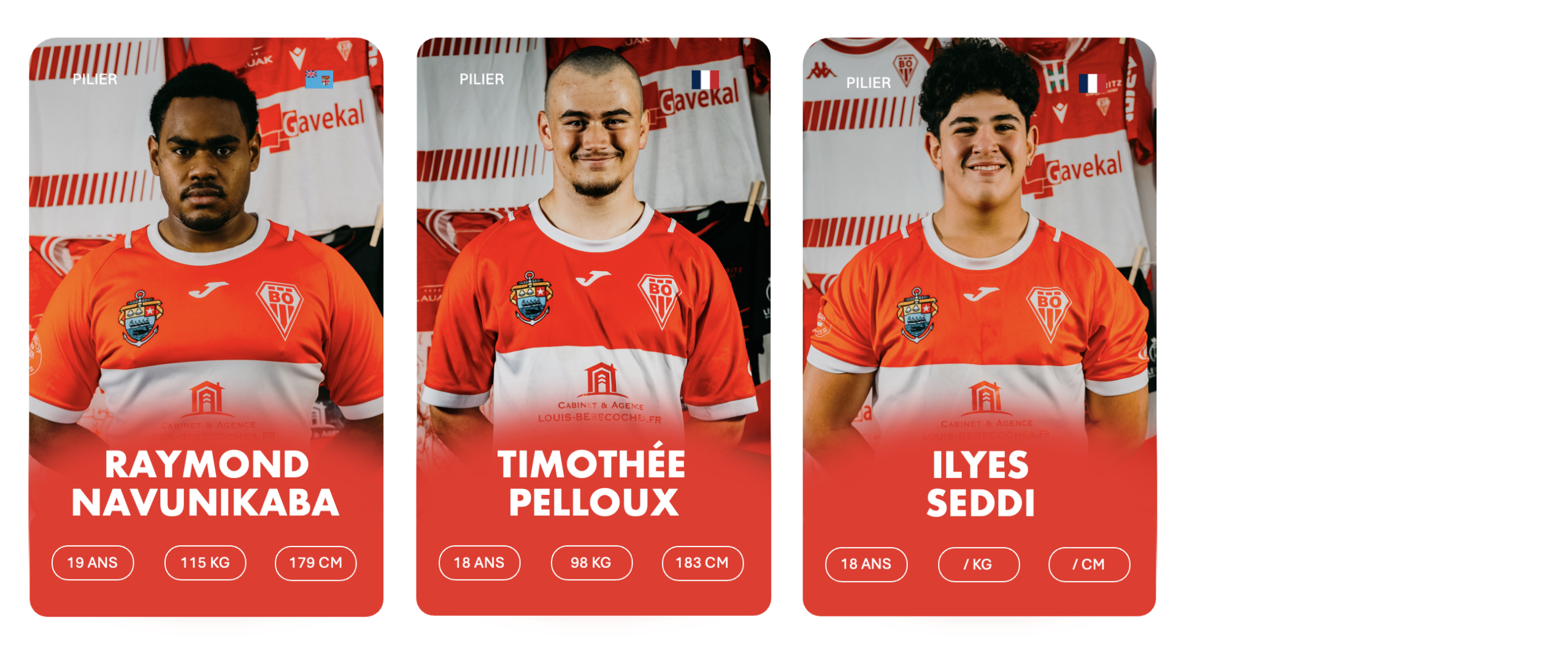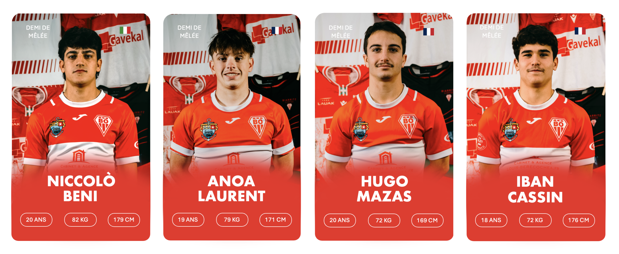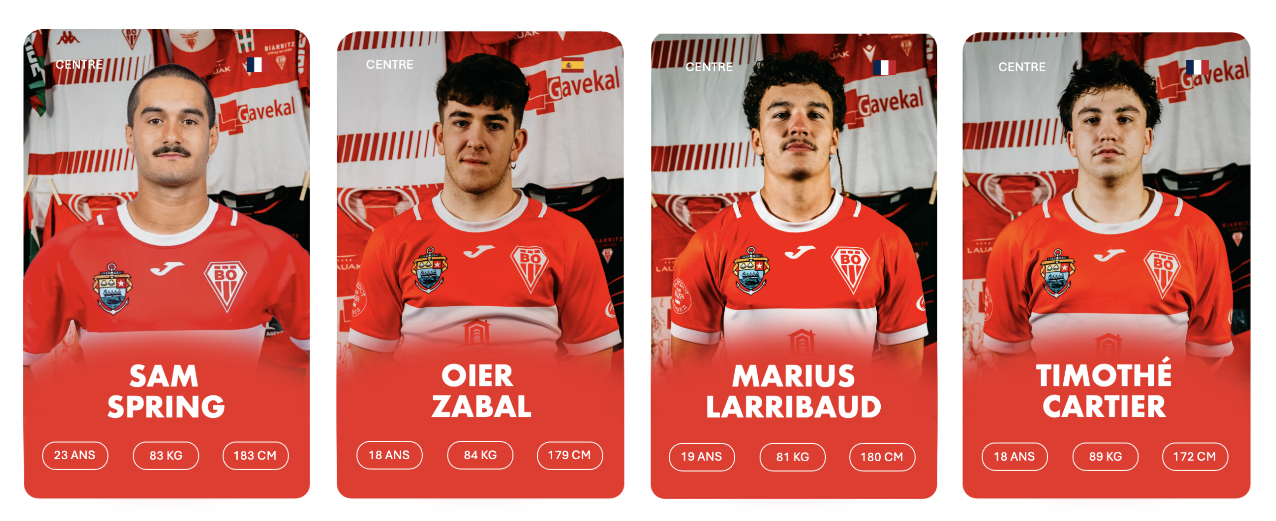 3ème rang debout de gauche à droite : Stanislav KUCHERENKO, Charlie LAFON, Markel ODRIOZOLA, Cyril FLAURAUD, Bruno VAGNI, Eneko MENAUT ROBLES, Inaki AGUERRE, Kepa EBODE N’KOA, Luke TAVALU, Roméo PETIT, Mattéo DABBADIE, Thomas BIDABé, Antton CARRERE, Millian OULDJi, Thibaud PICHARDIE, Cynseah TAUTALAFUA