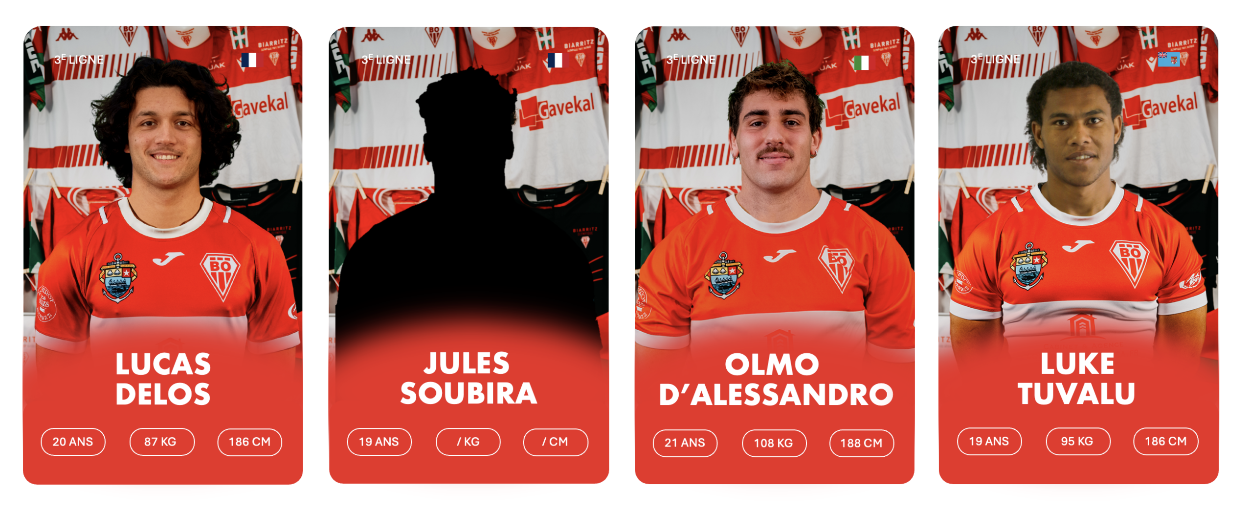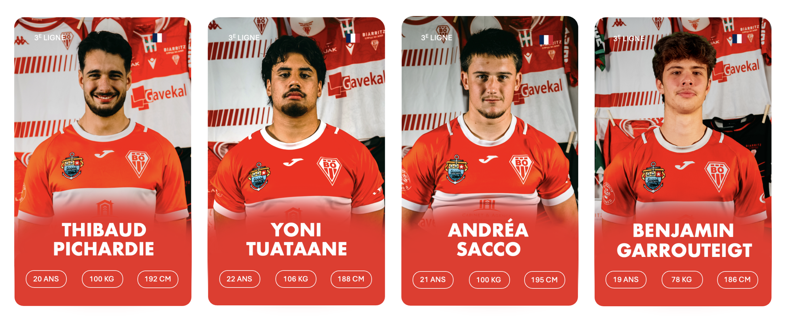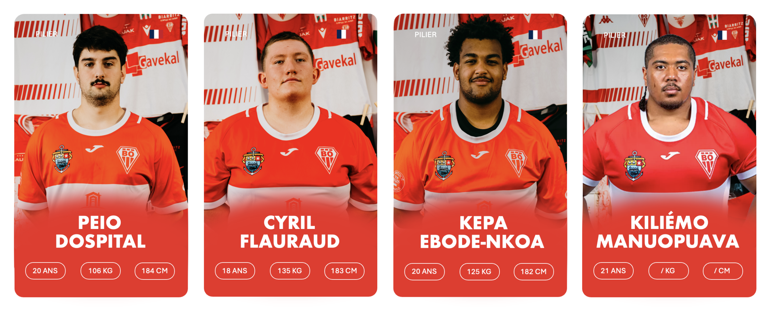 3ème rang debout de gauche à droite : Stanislav KUCHERENKO, Charlie LAFON, Markel ODRIOZOLA, Cyril FLAURAUD, Bruno VAGNI, Eneko MENAUT ROBLES, Inaki AGUERRE, Kepa EBODE N’KOA, Luke TAVALU, Roméo PETIT, Mattéo DABBADIE, Thomas BIDABé, Antton CARRERE, Millian OULDJi, Thibaud PICHARDIE, Cynseah TAUTALAFUA
