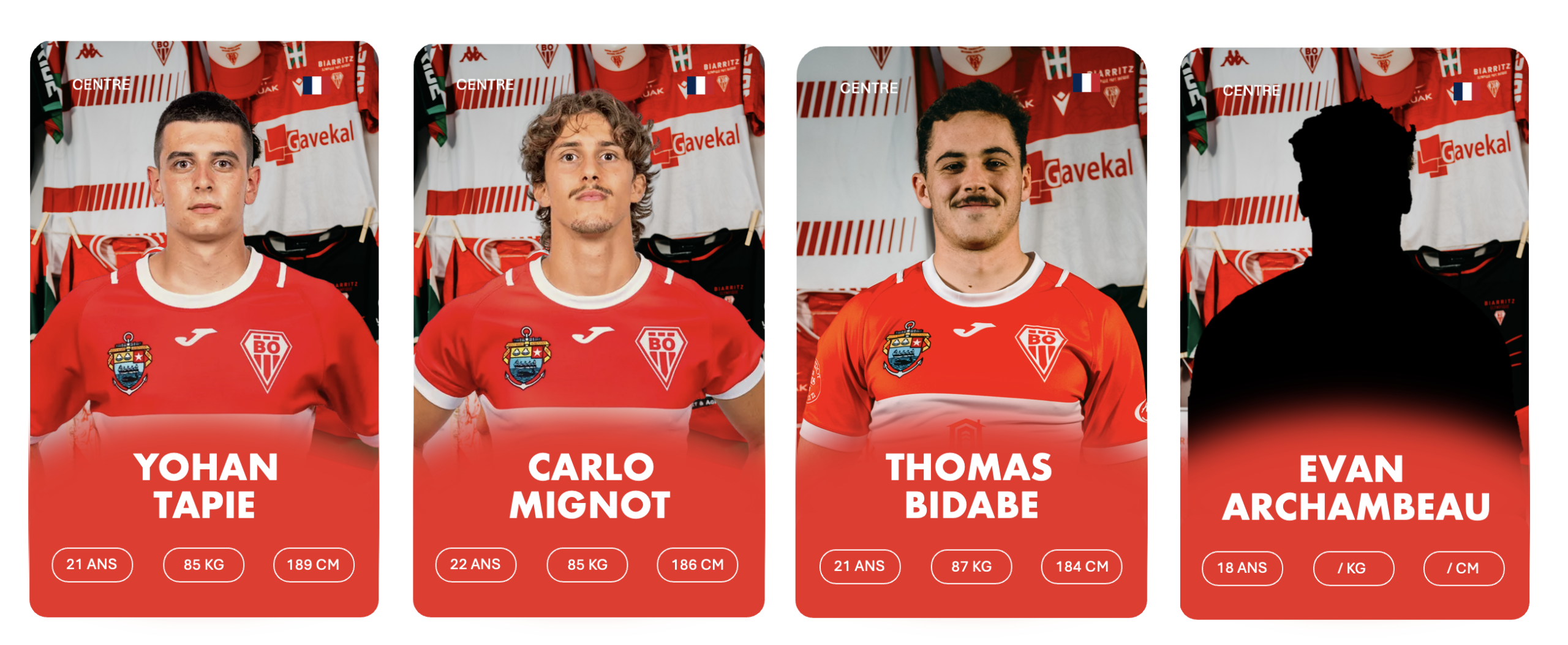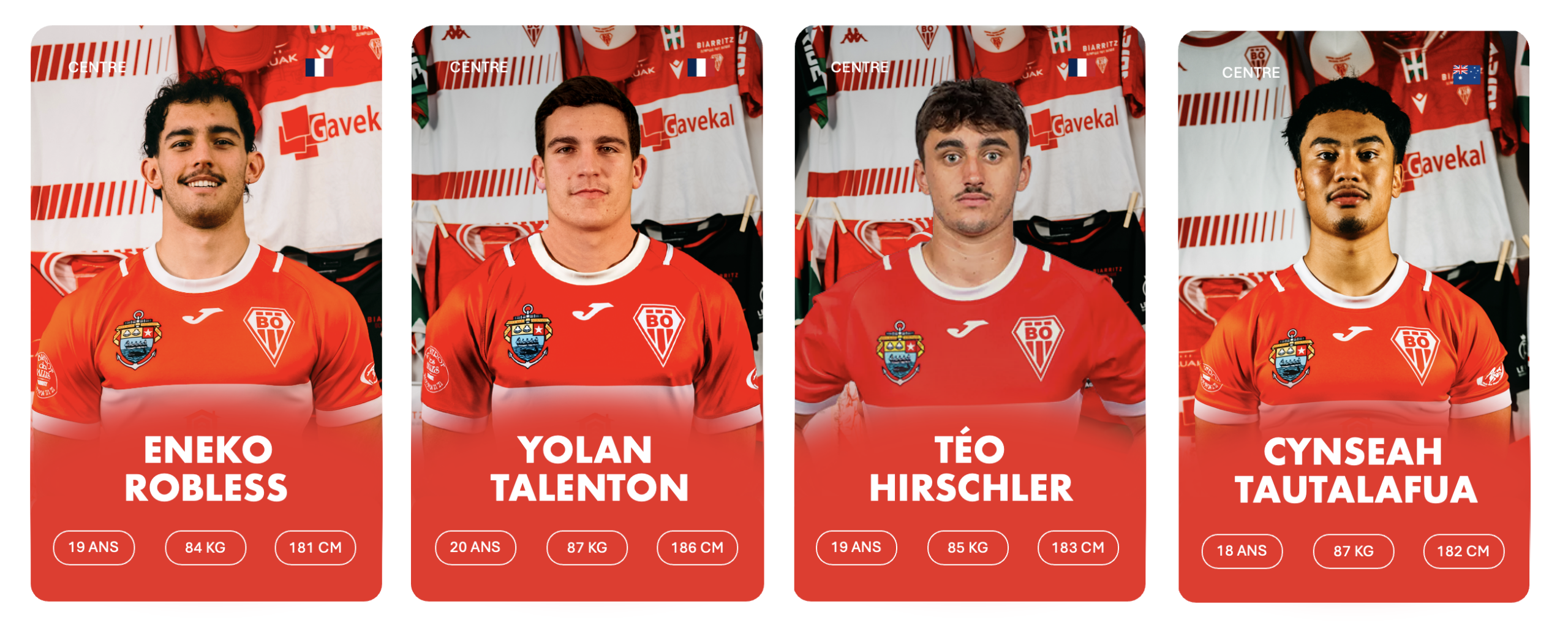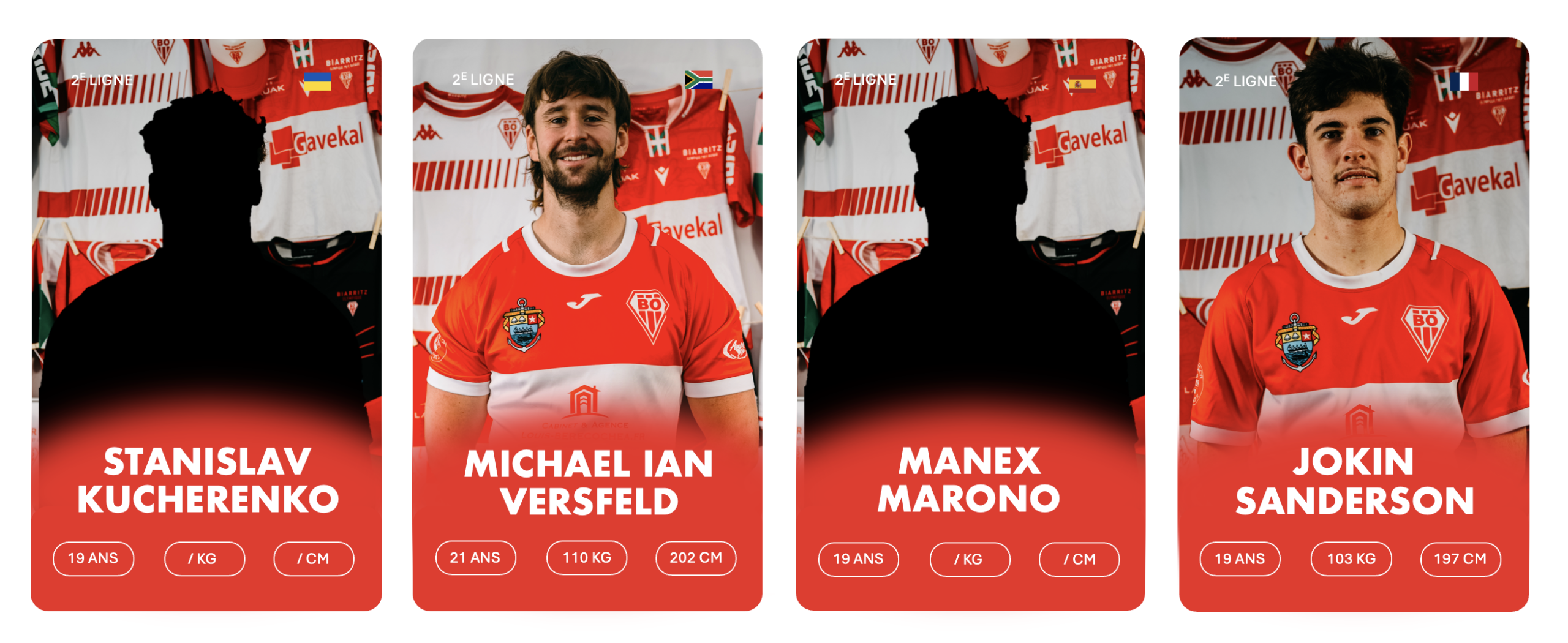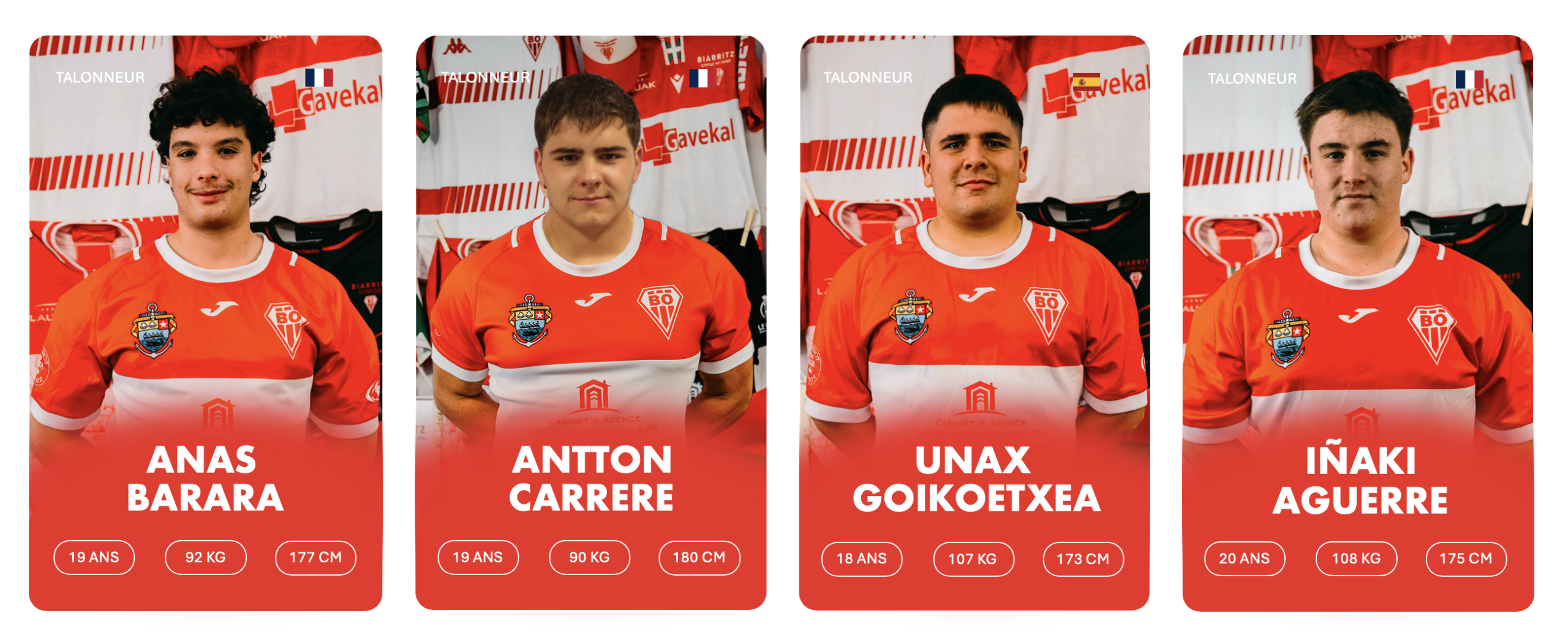 3ème rang debout de gauche à droite : Stanislav KUCHERENKO, Charlie LAFON, Markel ODRIOZOLA, Cyril FLAURAUD, Bruno VAGNI, Eneko MENAUT ROBLES, Inaki AGUERRE, Kepa EBODE N’KOA, Luke TAVALU, Roméo PETIT, Mattéo DABBADIE, Thomas BIDABé, Antton CARRERE, Millian OULDJi, Thibaud PICHARDIE, Cynseah TAUTALAFUA